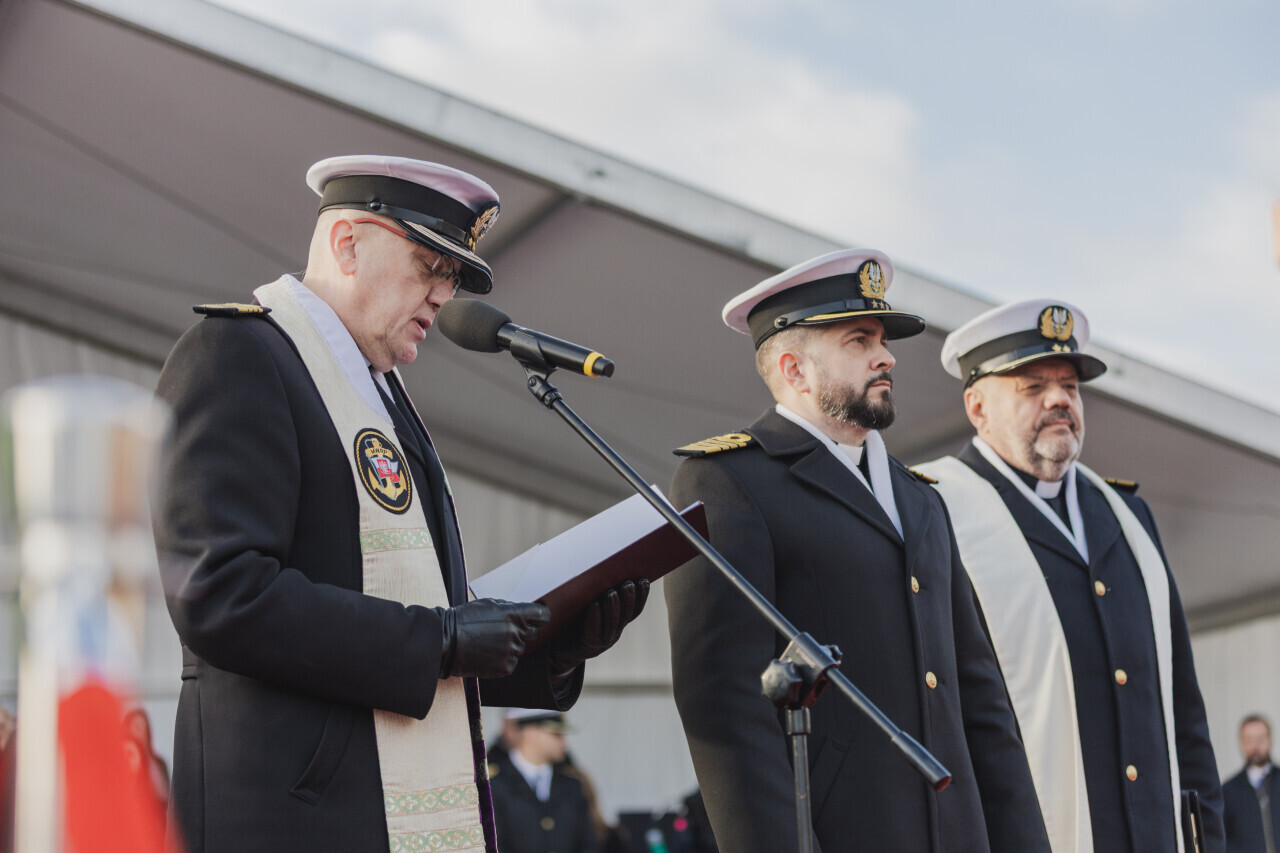 W uroczystości w stoczni Remontowa Shipbuilding wzięli udział m.in. gen. broni Marek Sokołowski, dowódca generalny rodzajów sił zbrojnych, wadm. Jarosław Ziemiański, inspektor marynarki wojennej w DGRSZ, przedstawiciele władz samorządowych, przemysłu obronnego i stoczniowego. Do zgromadzonych list skierował wicepremier, minister obrony narodowej, Władysław Kosiniak-Kamysz. Na zakończenie uroczystości przedstawiciele holdingu PGZ i stoczni Remontowa Shipbuilding podpisali list intencyjny, formalizujący współpracę dotyczącą oferty okrętów typu Kormoran II dla klientów zagranicznych. Dzięki porozumieniu obie spółki będą prowadzić wspólne projekty związane z eksportem na rynki Unii Europejskiej, NATO oraz krajów sojuszniczych.